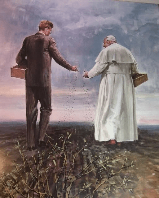 (Painting of John F. Kennedy and Pope John XXIII entitled the “Peace Sowers” was done by Walter Molino)